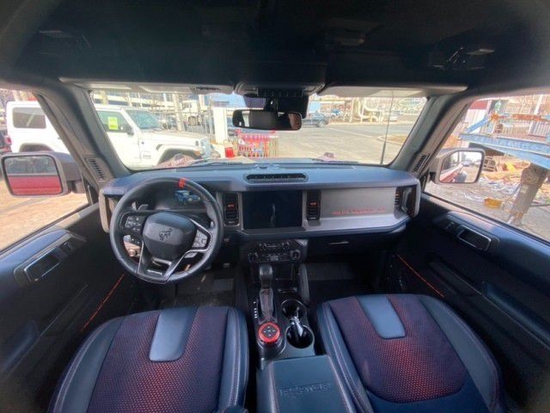 23款福特烈马Bronco车内采用硬朗的设计风格,中控台设计主次分明且有层次感,用料也厚实,多功能方向盘造型运动,中控屏幕采用内嵌式的设计增添了车内的时尚感,按键布局合理,档把设计精致,座椅宽大厚实,空间宽敞,实用性强。