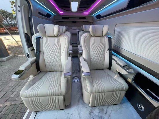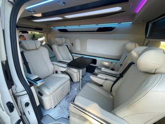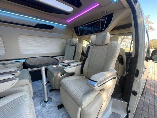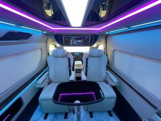 丰田海狮整车升级了加强型的隔音隔热处理,车内带空气净化系统,无线充电系统。在进门侧加装了氧化铝脚踏带迎宾灯的,整车都是采用纳帕级皮质进行包覆的,侧壁桃木装饰,手动百褶窗帘,后舱暖风系统,最后说说棚顶灯光,这个有智能触摸控制系统。灯光超级棒。