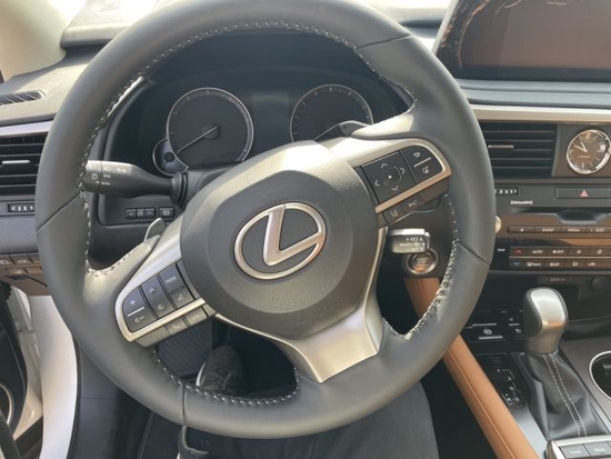 雷克萨斯RX (配置|询价)350:1720*1895*4890,轴距2790,5座,毛重2660,整备1990,油箱72L,功率295 @ 6,300 Rpm,接角17°,离去角24.9°,离地局208,最小转向半径5.9m,P235/65R18, 18寸铝合金轮毂,轮毂锁,3.5L,6缸,8速自动挡,全轮驱动,主动扭矩控制系统ATRC,手动换挡拨片,电子助力转向EPS ,发动机防盗警报,驾驶模式选择,VSC,TRAC,HAC, EPB,ABS,BA,EBD,电动天窗,前后挡泥板,尾翼,行李架,大灯清洗,LED 日行灯,LED大灯,雨量感应雨刮,电动外部加热后视镜,急救包,前排缓冲气囊,SRS气囊,前排侧气囊,驾驶座膝盖气囊,侧卷帘气囊,后排侧气囊,智能卡,一键启动,后尾门开启,雷克萨斯安全系统2.0:预防撞系统,行人检测,AHB自动大灯,雷达测距,车道循迹辅助系统;盲点监控+RCTA, 倒车影像带引导功能,真皮拍档头,双区自动空调控制,花粉过滤,加热后排座椅,打孔真皮座椅,加热通风前排座椅,2方向电动腰部支撑,驾驶座带记忆,前排座椅通风加热,8方向电动调节乘客座,8方向电动调节副驾驶座,脚垫,货仓盖