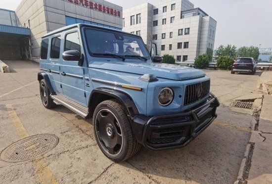 图中所展示的这款车就是瓷器蓝配色“奔驰G63”。大体的轮廓上这部车已经没有太多可以改变的地方了,整部车和以往一样依旧是一副“硬汉”的形象。正面上直瀑式的进气格栅很有力量感,值得一提的是这部车的前包围进行了加强处理,让本就非常硬朗的外观又多了份霸气感,环装的炮眼式前大灯依旧是这部车最亮眼的地方,点亮的瞬间更是彻底被征服。中网的奔驰LOGO显得格外的光彩夺目!