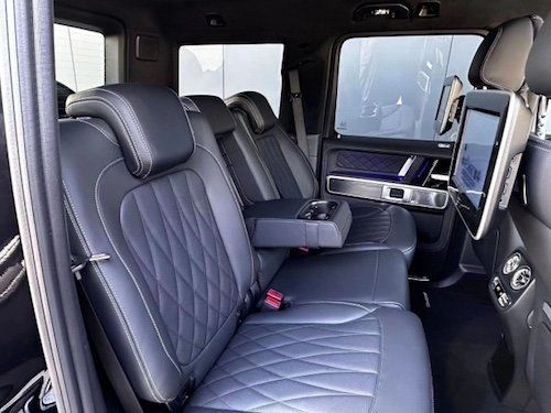 黑黑 配置:AMG运动组件,大暗夜,高光泽黑色涂装(大灯 转向灯 中网 前杠 后备胎罩 后视镜 ),升级版夜色组件(夜色组件增加:高光,泽涂装 前后车标 G400D数字标识),真皮内饰组件,(真皮仪表台 NAPPA真皮内饰),独家内饰组件真皮包覆仪表台 真皮包覆门板 真皮包覆门把手 手工定制菱形格座椅 座椅通风 加热 按摩 动态支撑 DINAMICA鹿皮顶),碳纤维内饰板,几何多光束大灯,后排隐私玻璃,360环车影像,柏林之声音响,主动驾驶辅助(雷测),球形拖车钩,后娱,不改车架号
