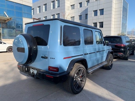 22款奔驰G63全新 G63有着强大的驱动系统还有新开发的 RIDE CONTROL悬架,专用变速器模式、宽屏的驾驶舱、搭载4.0L V8双涡轮增压发动机,和老款最大的区别在于进气格栅 一改奔驰家族常见的横向设计,变成了直瀑式造型,整体给人的视觉效果很独特,辨识度增加
