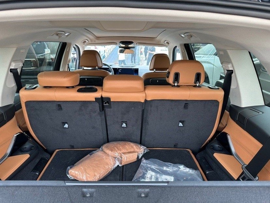 全新一代23款平行进口宝马X7在将第二排的腿部空间调整至两拳后,第三排可以获得一拳的腿部空间,虽然头部空间比较有限,不能与MPV车型相提并论,但是宝马X7的第三排也并不像一般SUV车型那样会有一种压抑感,客观地说,宝马X7的整个座舱空间还是相当宽敞。并且车内第五区的空调就是为第三排乘客服务的,座椅两侧还各有一个Type-C接口,给第三排的乘客带来更多的方便。