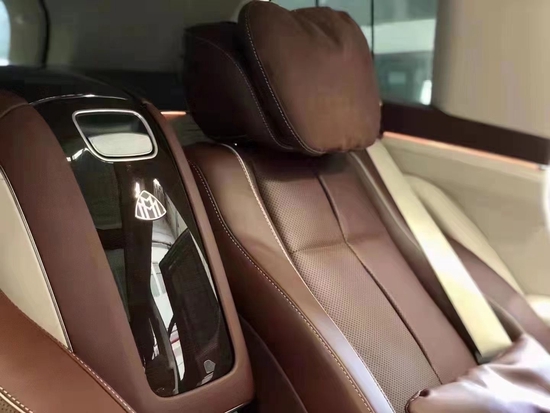 奔驰迈巴赫GLS600的四座第二排独立座椅相比普通版GLS更加靠后,并且带有巨大的腿拖,其后排座椅最大倾斜角度大43.5度,后排腿部空间最大达1.34米。中央由冰箱、控制台、储物空间和手机无线充电台等进行贯穿,呈现出类似于迈巴赫S级 (配置|询价)一样的头等舱设计。