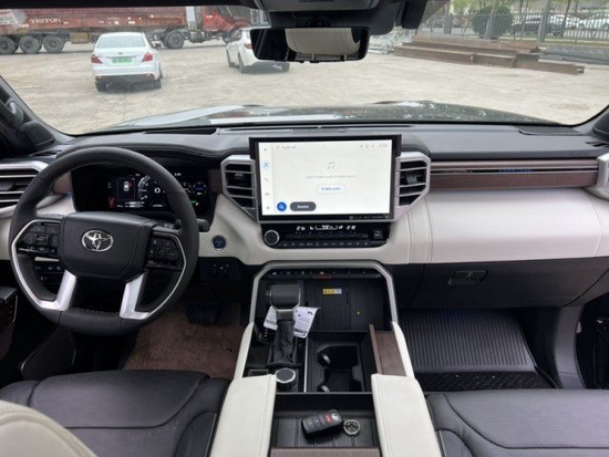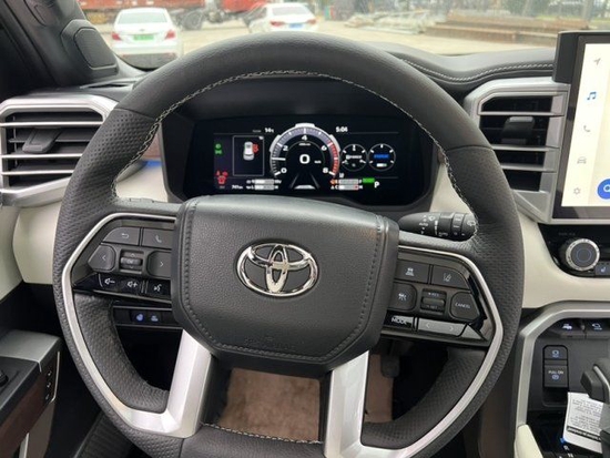 23款丰田红衫新车内饰采用了全液晶仪表盘与四辐式多功能方向盘,并搭配了悬浮造型中控多媒体显示屏,整体内部的设计布局与坦途相差无几,并在中控台上保留了大量的物理按键,在营造科技感的同时不失传统的机械质感。此外,新车在空间布局上将提供7座座椅布局,进一步提升实用性。