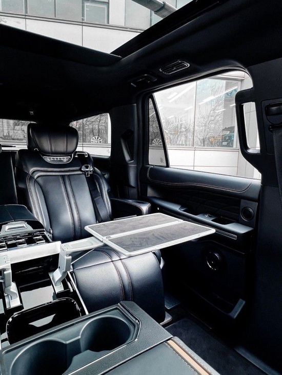 二排座椅采用宽体航空座椅设计、宽大舒适、纳帕小牛皮包覆、配备通风、加热,气动按摩 、无线充电、电动升降头枕。小桌板,氛围灯,扶手功能:触摸屏控制、6升压缩机冰箱、无线充电+双USB充电、原车天窗控、座椅姿势3种记忆、一键折叠,轻松上下三排座椅,超长轨道设计