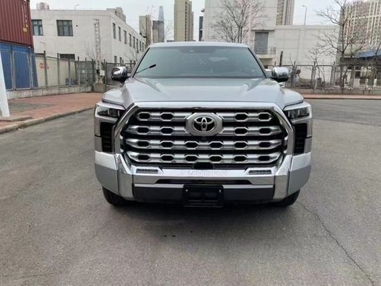 23款丰田坦途外观部分,新车采用了全新的设计风格,最具辨识度的莫过于前脸这块非常大的进气中网设计,通过亚光银的饰条搭配黑色蜂窝网状的造型使得视觉上整个中网的面积似乎从车标一直拉通到前保险杠的位置上,第一感觉无疑是非常野性的