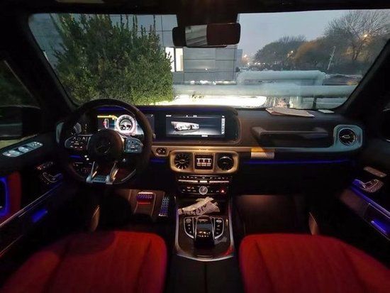 奔驰的内饰都会让你眼前一亮,当然了这也是奔驰的一个特色。所以这部全新的G63在内饰的表现上也是情理之中的,但是细节上还是有些小小的意外。这种感觉是打开车门的瞬间就能够感受到的。首先仪表和中控屏依旧是采用了同一款液晶屏显示。