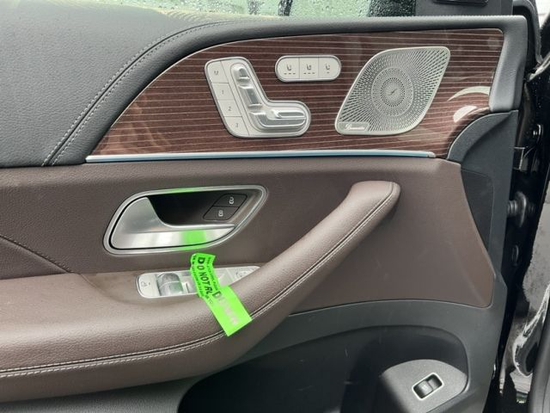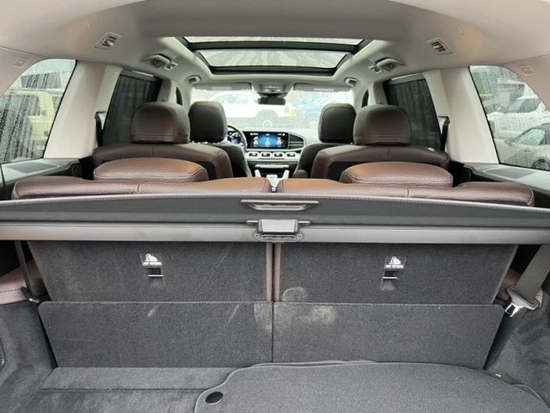 2023款奔驰GLS580真皮包裹的内饰极度奢华,车门全部使用真皮奉献包裹,中控的连屏设计也很有科技感。 A 柱和车顶都使用了换毛皮设计,真皮座椅也是宽大舒适柔软。内饰大面积使用真皮包裹。后排还配有两个小电视,中控采用 12 英寸的液晶屏。车门的真皮做工非常细致,中间的控制区有两个扶手,我们来到后排看看。