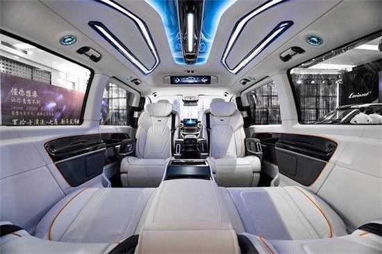 艾奈斯进口奔驰V250商务车的车内的门板全部采用了纯手工的深度包覆,触摸起来更加舒适柔软!二排座椅同罗伦仕天系列的车型完全一样;采用了人体工程学设计的座椅,完全贴合人体的脊柱曲线,即便是长途乘坐也是非常的舒适。座椅一贯选用了物理按键设计,调节起来更加方便,同时也避免了触摸屏会出现的程序紊乱等问题。