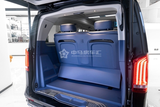 后舱三排联动式沙发座椅,可一键式躺平。