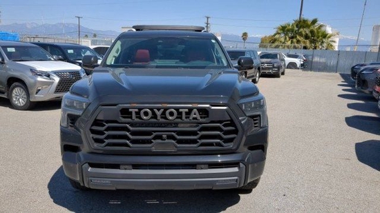 23款丰田红杉的外观采用了最新的丰田家族式设计语言打造,前脸大尺寸的进气格栅搭配造型犀利的大灯组以及厚重的下包围,整个前脸看起来十分硬派。侧面可以看到它的侧面线条和LX600 (配置|询价)有些类似,不过它比LX600看起来更加的壮实。