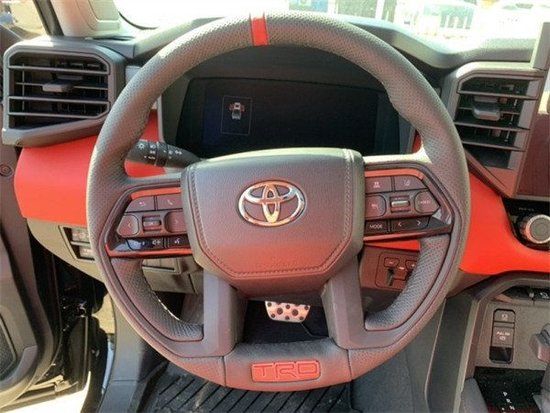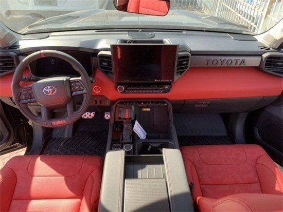 2023款丰田坦途这套内饰应该说是非常时尚和科技,14寸悬浮式中控屏、12.3全液晶仪表、CarPlay和Android Auto手机互联、行人检测的前碰撞预警、动态雷达的巡航系统、车道保持辅助系统以及TSS2.5智行安全系统等科技配置也非常丰富。