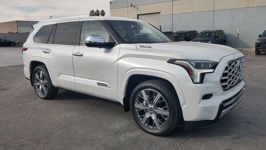 23款丰田红杉的前脸看起来和坦途基本一样,特别是大尺寸的横向进气格栅以及两侧的L形大灯组,不过格栅和下包围并未像坦途那样是相连的,但却显得车头更加霸气,而且还增加了些层次感。