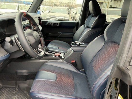 23款福特烈马Bronco 3.0T四门Raptor猛禽车内采用硬朗的设计风格,中控台设计主次分明且有层次感用料也厚实。多功能方向盘造型运动,中控屏幕采用内嵌式的设计增添了车内的时尚感,按键布局合理档把设计精致座椅宽大厚实空间宽敞实用性强。