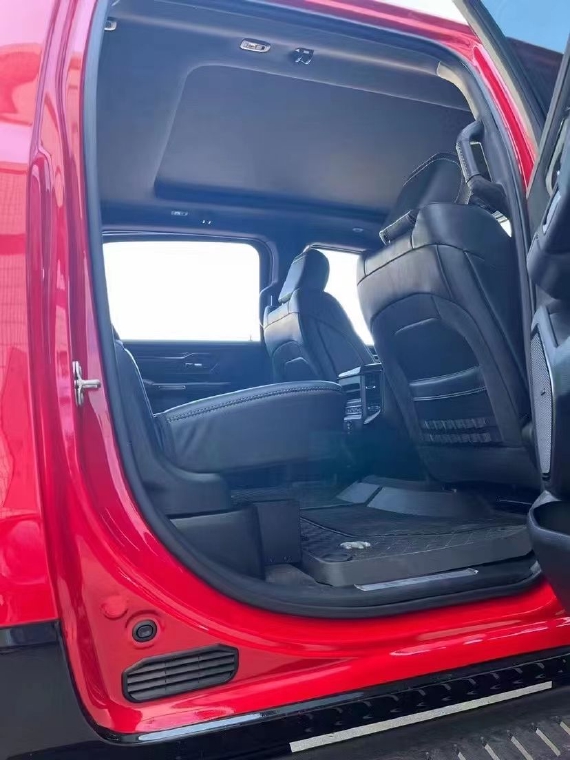 道奇公羊霸王龙TRX做工则完全摆脱了美式的粗糙感,边缘、接缝都处理的很精细,真皮座椅各自独立,配有加热、按摩等舒适功能,每个座椅独立配一个操控手柄,各项功能由乘坐者自己控制。道奇公羊皮卡车型全部座椅均采用真皮包裹,前排还配备了十分实用的运动座椅。
