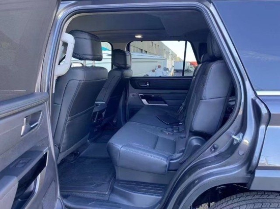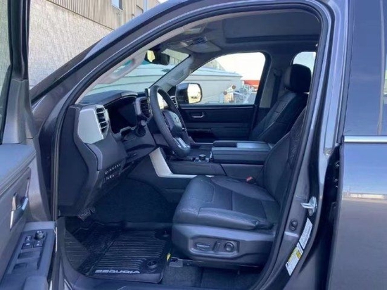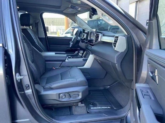 2023款丰田红杉的内饰的实用性与空间利用率在这代红杉身上均得到提升,坐进车内,第一感受就是大,前排的两个大尺寸的真皮座椅,自带打孔透气皮料,四幅式多功能方向盘,握在手里的质感不错,转向也没有想象那么重,T型的中控平台,尺寸方面也比一般车型大不少,14英寸的中控触摸屏,集成了几乎所有的影音娱乐以及车身控制功能。