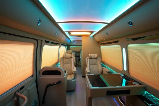 丰田考斯特作为一款顶级商务旅行房车,内饰的豪华改装绝对是主打卖点,仅仅从外面透过一点点缝隙看车厢的内部都能感觉到里面的奢华感,华通丰业车顶有七色炫彩的空客顶灯,绿色灯光的宁静,或者是粉色灯光的温馨,华通丰业各种颜色可使用遥控器随心调节,以及窗帘内部的七彩调节LED灯(通过触摸屏自由调节开启)舒缓眼睛疲劳,给您心灵上的抚慰,华通丰业七彩窗帘立柱灯提升整体品味又或是全车的游艇木柚木地板(防潮防滑耐脏),侧壁上的阅读灯营造温馨舒适环境,处处都在体现改装后的高品质、高咖位。