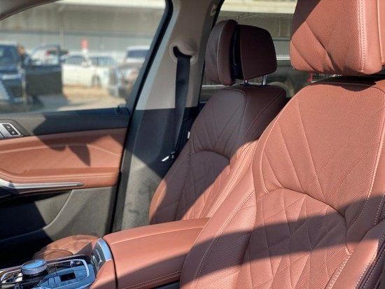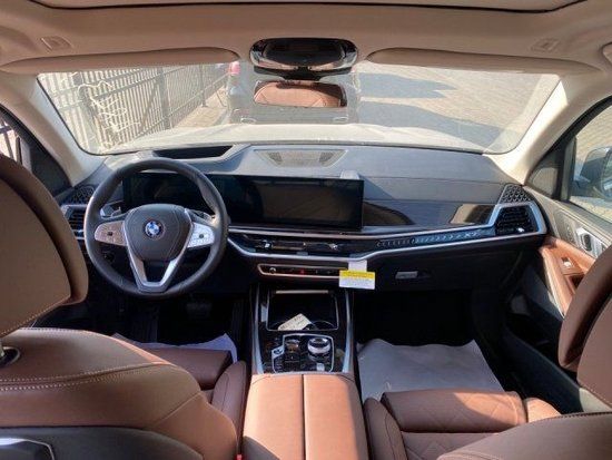2023款美规宝马X7 黑蓝宝石/咖 配置:全景天窗,抬头显示,21寸铝合金轮毂,曲面液晶双连屏,行李架,自适应巡航,主动盲点监测,车道偏离预警,远程启动,前座椅加热,方向盘加热,中央扶手加热,运动座椅带记忆,腰部支撑,自适应LED 大灯,LED雾灯,环境照明,前后电眼,倒影,胎压监测、菱形格座椅。