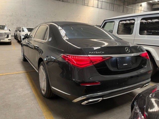迈巴赫s580现车,配置:金属漆 特别定制后排座椅包 (行政后座椅包 带中控台的后排座椅 后排座椅折叠桌 温度控制后杯架 后排电动门 后排冷藏箱 银香槟杯 高端内饰包4.5度后轮转向辅助,玫瑰金钥匙全新迈巴赫s580的车身的侧面很有气场。