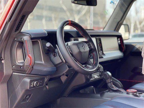 Bronco烈马 22款 3.0T 四门 Raptor猛禽 暗影黑/黑,报价130万模块化前杠带RIG雾灯,金属后杠,挡泥板挂紧钩,灰/黑拼色进气格栅,全底盘金属护板,前大灯自动远光LED,带标志LED大灯,电动折叠后视镜,加强旋启式后门,可拆卸防石击护杠,脚踏板,拖车钩前2后2,一键升降车窗,60/40折叠式后排座椅,带预接线的辅助开关,手套箱,LTHR档位旋钮,MOLLE皮带系统,12v电源插座,运动真皮方向盘,拨片换挡,12寸LCD触屏,360度环车影像,FORDPASS-连接4G热点远程信息处理器,前后门锁同时开启关闭,坡道缓降辅助,HOSS 4.0 悬架,FOX可调阻尼减震,预碰撞辅助系统,猛禽工具箱,天狼星系统,G.O.A.T模式,37X12.5R17 A/T百路驰全地形胎,多片式可拆卸硬顶及消音顶棚,前排顶板储存袋,铺装式脚垫,无钥匙进入。