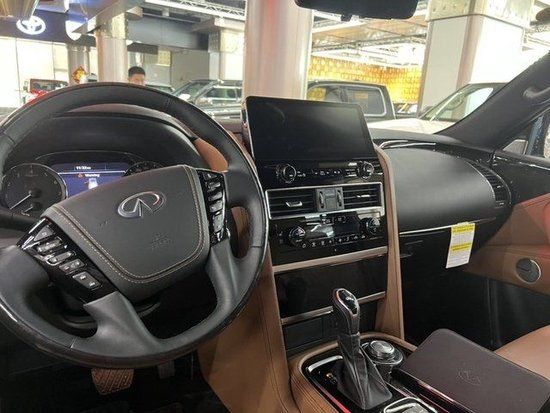 新款QX80 (配置|询价)内饰布局也与现款车型基本一致,但中央12.3英寸的悬浮式中控屏取代了现款车型上的小屏幕,同时还支持Apple CarPlay和Android Auto手机互联,以及手机无线充电,自动空调、InTouch服务等功能。同时,车内第二排可选装双人独立座椅,第三排座椅则是标准配置。