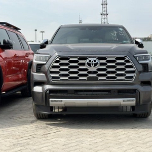 配置:镀铬格栅带镀铬边框,镀铬外后视镜罩,磨砂镀铬行李架,电动外侧踏板,半苯胺真皮座椅(黑白双拼),Capstone地垫,仪表板/门板氛围灯,隔音夹层前侧窗玻璃,10寸抬头显示,副驾仪表板“CAPSTONE”徽章,22寸深色镀铬铝合金轮毂,亮色镀铬“SEQUOIA”徽章和镀铬“CAPSTONE”门徽章和装饰、车窗边框、车身同色挡泥板,深色胡桃木内饰,雨量感应兩刷,前/后排座椅加热通风,10向电动主副驾带4向腰撑,第二排独立座椅,LED尾灯带流水转向灯,高级LED大灯带LED日间行车灯,流水转向信号,自动高度调节,氛围灯,流媒体后视镜,无线充电,360环影,全景天窗,电动四向方向盘,JBL音响(14喇叭),中控14寸触屏,电动折叠第三排座椅,主驾带记忆,加热方向盘,手动第二/三排遮阳帘,400W/120V后备箱交流电源,12.3寸行车电脑,Apple CarPlay/Android,三区空调,全景监测(PVM),主副驾/前排膝部/前侧气囊/侧气帘(8气),自动防眩目內后视镜,外后视镜:电动调节/折叠/翻转/加热/主驾防眩目带,转向信号和盲点警告指示灯,隱私玻璃,无钥匙进入/一键启动,Toyota Safety Sense 2.5(预碰撞安全系统带行人检测、全速自适应巡航、车道偏离警报带转向辅助、车道追踪辅助(LTA)、自动远光灯、交通标志识别(RSA)),盲点监测(BSM)带后交通警报(RCTA)/拖车合并警告,前后雷达带制动。