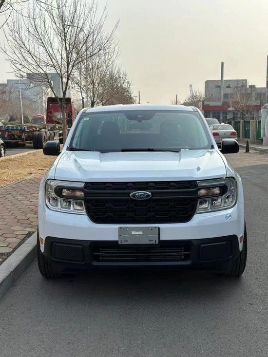 2022款福特Maverick 独行侠与烈马相似的硬派设计,中网格栅不仅采用了更大尺寸的矩形设计,还内嵌粗犷的横向熏黑中央饰条,两侧头灯组则为经典的C型设计。