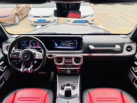 23款奔驰G500 (配置|询价)的内饰是奢华与硬派的结合卓越的品格和典雅的工艺在车内表现得淋漓尽致,对细节的千锤百炼是内饰计划中的首要原则。内饰变化巨大,全新的12.3寸液晶仪表、扶手箱、方向盘,都是奔驰最经典的设计理念。两块屏幕组成中控主体。