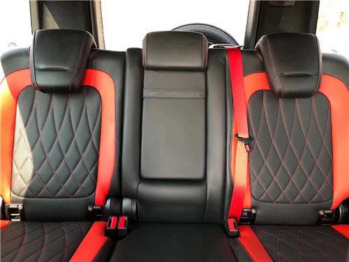 全新的直瀑式进气格栅可以说是家族最新的设计风格,也是在新车外观造型上与奔驰系列产品差异化最明显的地方。其中AMG系列的直瀑式格栅在新时代下的鼻祖可以说是AMG GT (配置|询价) 车型,它内部由12根竖置镀铬饰条组成,同时新车的保险杠进气口相比G500造型也更具有攻击性。此外,新AMG G 63最大的轮圈尺寸提供22英寸可选,进一步提升了它外观造型的彪悍程度。展车不仅采用了全新的车身涂装,还搭配了红色的轮圈装饰,更加个性。
