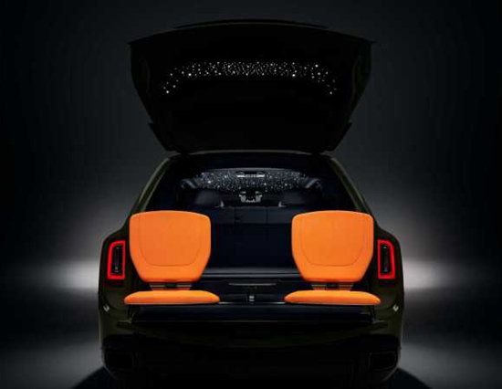在内饰上,该车也沿用了奢华的样式设计,而在Fu‑Shion主题中,车身颜色还配有军绿色、灰色以及黄色外观,内饰也将配备北极白和灰色皮质材料。值得一提的是,劳斯莱斯库里南 (配置|询价)特别版都将采用星光后尾门,打开后带来了梦幻效果。13810013306郭先生