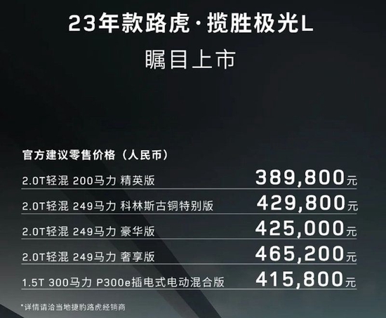| 2023款路虎·揽胜极光L 指导售价 | |