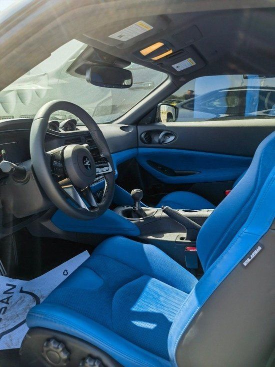 日产高 性能刹车系统,红色刹车卡钳,发动机转速匹配系统(降挡自动补油),19 英 寸 RAYS 超轻量锻造合金轮圈,前下扰流板,后扰流板,铝合金踏板,高级真皮 油漆颜色 巨石灰/黑色双拼金属漆 内饰颜色 蓝色真皮 方向盘,主副驾驶 4 项电动调节座椅,真皮座椅,8 扬声器 BOSE娱乐系统