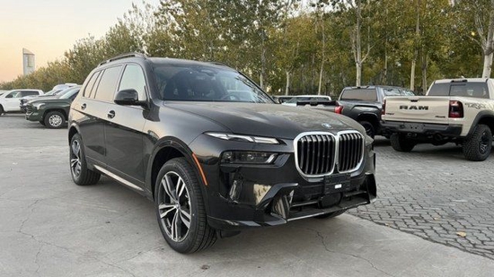 2023款宝马X7 (配置|询价)整体造型延续了此前概念车的设计。贵宾购车电话:17627885113 祝经理 (微信同电话)进气格栅相比宝马现款车型尺寸更大,两侧大灯也采用了开眼角设计,但造型更加狭长,搭配内部的日间行车灯,有着较强的科技感。