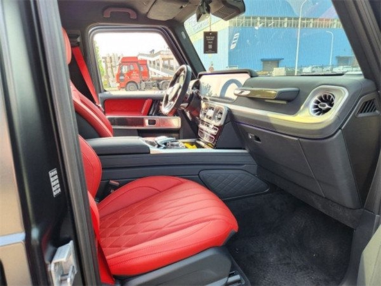 2023款奔驰G63后排有独立空调、充电接口、座椅配置了头枕,中央扶手里有杯架。后排座椅可以调节靠背角度,也带有加热功能,支持按比例放倒。G63作为G级家属顶级成员,奔驰 G63 AMG车型具有没有可对抗的越野机能,以最为纯正的驾驶体验,深受胜利人士的青睐,而在越野一族里奔驰G63 AMG也是唯一一款荣获尊贵越野车美称的车型。