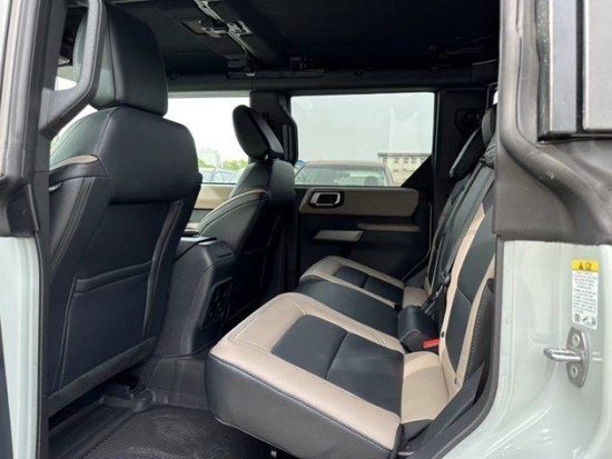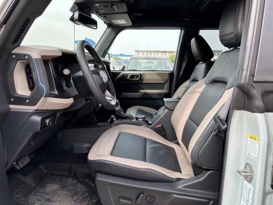 23款福特烈马Bronco车内采用硬朗的设计风格,中控台设计主次分明且有层次感,用料也厚实,多功能方向盘造型运动,中控屏幕采用内嵌式的设计增添了车内的时尚感,按键布局合理,档把设计精致,座椅宽大厚实,空间宽敞,实用性强。