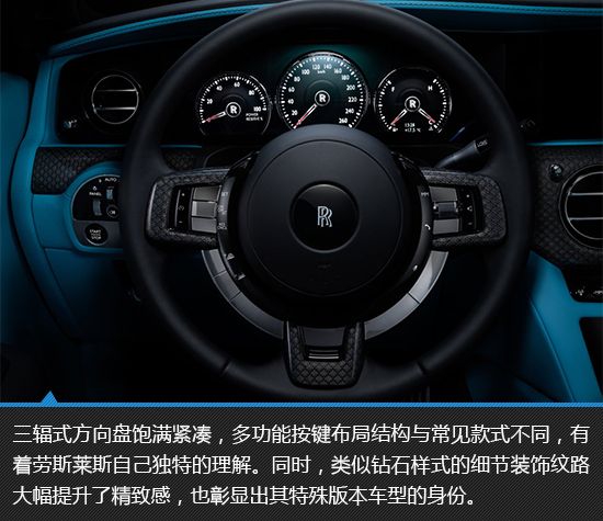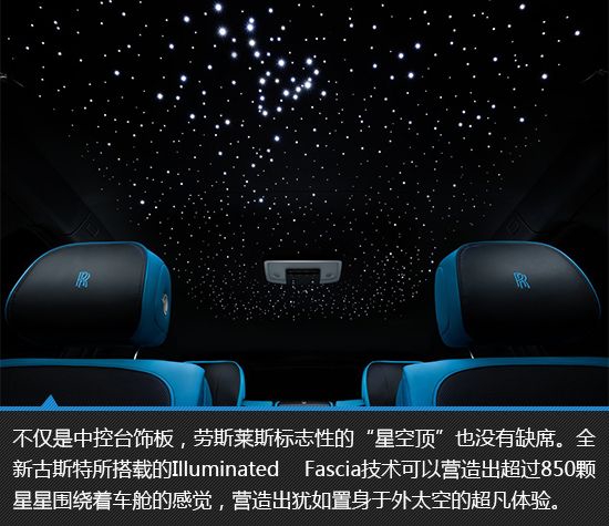 外观用于点缀的浅蓝色元素在内饰部分一下反客为主,成为了主基调,与深邃的黑色相搭并不会显得过于轻浮,反而营造出有一种独特的质感,不愧是劳斯莱斯,即便年轻化都“玩”的这么有深度。同时,整车在Illuminated Fascia星空氛围灯的笼罩下,为劳斯莱斯车主呈现出专属的特有氛围,仿佛整个星空都在车厢周围环绕,搭配劳斯莱斯古斯特Black Badge黑色的主基调,犹如置身外太空一般。13810013306郭先生
