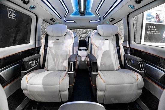 艾奈斯进口奔驰V250商务车的车内的门板全部采用了纯手工的深度包覆,触摸起来更加舒适柔软!二排座椅同罗伦仕天系列的车型完全一样;采用了人体工程学设计的座椅,完全贴合人体的脊柱曲线,即便是长途乘坐也是非常的舒适。座椅一贯选用了物理按键设计,调节起来更加方便,同时也避免了触摸屏会出现的程序紊乱等问题。