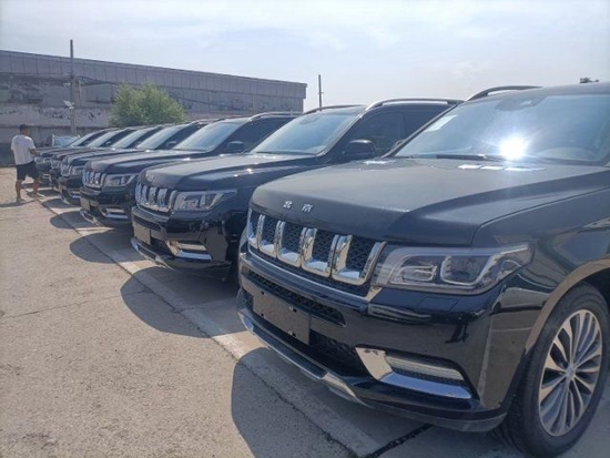 2021款北京BJ90基本延续了旧款车型的造型设计,前脸的进气格栅依旧通过宽厚的镀铬装饰填充,形成五孔造型,底层则是采用黑色的网状结构包裹。两侧平行四边形样式的大灯组与进气格栅融为一体,灯腔内配备氙气远光灯光源,而L型LED日间行车灯则位于灯组顶部。 前包围区域通过棱角分明的镀铬条装饰,呈现出三段式布局,梯形样式的下进气口内部同样采用黑色网状结构填充。