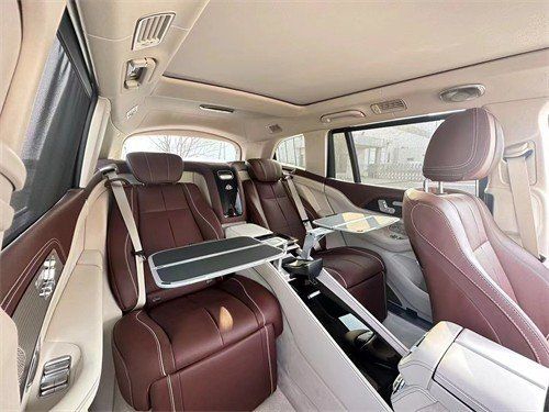 23款迈巴赫GLS600新车提供四座布局,四座车型第二排独立座椅相比普通版GLS更加靠后,并且带有巨大的腿拖,其后排座椅最大倾斜角度大43.5度,后排腿部空间最大达1.34米。中央由冰箱、控制台、储物空间和手机无线充电台等进行贯穿,呈现出类似于迈巴赫S级 (配置|询价)一样的头等舱设计。