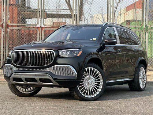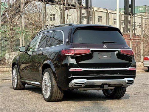 23款迈巴赫GLS (配置|询价)600车身侧面,新车采用双色车漆喷涂,配备23英寸多幅熏黑轮毂,D柱之上镶嵌迈巴赫专属LOGO,同时车窗周边的镀铬装饰也凸显了尊贵的身份,整体的车身设计简洁而干练。车尾也采用了大量的镀铬装饰,GLS 600和Maybach英文标识所使用的字体样式相比以往车型质感更强。