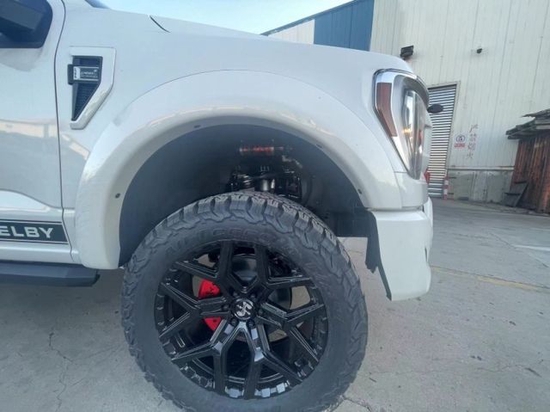 福特F150谢尔比的外形明显要狂野的多,底盘做了大幅升高,车身也加装了一系列的外观套件,整体更凶悍更有肌肉感,而且还使用了谢尔比经典的双条纹赛车拉花,车头的眼镜蛇徽标更是身份的象征,这已经达到了兰博基尼大牛的水平,除了改装机械增压,谢尔比还换了更大的中冷器、高流量节气门、高性能燃油喷射系统等,福特F150谢尔比皮卡另外加装了美国古立德全地形轮胎,更换座椅皮革,并安装升压和燃油压力表。
