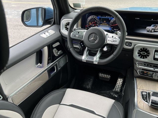 22款奔驰G63内饰方面,奔驰的设计绝对可以用惊艳来形容,无论是经典车型还是超豪华车型甚至是入门级的豪华车上,奔驰的内饰都会让你眼前一亮,当然了这也是奔驰的一个特色。贵宾购车电话:17627885113 祝经理 (微信同电话)所以这部全新的G63在内饰的表现上也是情理之中的,但是细节上还是有些小小的意外。这种感觉是打开车门的瞬间就能够感受到的。首先仪表和中控屏依旧是采用了同一款液晶屏显示,第一感觉就是科技感爆表。而其他方面例如方向盘,空调出风口,挡杆等等的设计充满设计感。