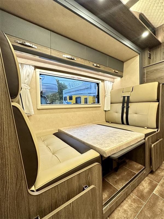 车身长度(长x宽x高)为5990 x2490 x3180mm,外观优雅大气、线条流畅,基于国产依维柯专业底盘打造,加宽后桥、定速巡航、胎压警报、双发电机的配置,使得整车平稳性极好。并提供丰富的智能舒适配置、一体化集控系统,以及丰富的影音娱乐系统。在车身左侧搭配外置遮阳棚,即可随时在蓝天白云的包围下享受悠闲时光。这种极致利用每一处细小空间的设计,的确可以给用户极高的舒适体验。
