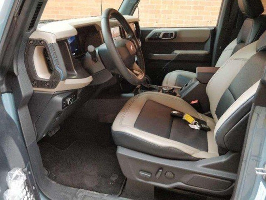 23款福特烈马Bronco车内采用硬朗的设计风格,中控台设计主次分明且有层次感,用料也厚实,多功能方向盘造型运动,中控屏幕采用内嵌式的设计增添了车内的时尚感,按键布局合理,档把设计精致,座椅宽大厚实,空间宽敞,实用性强。