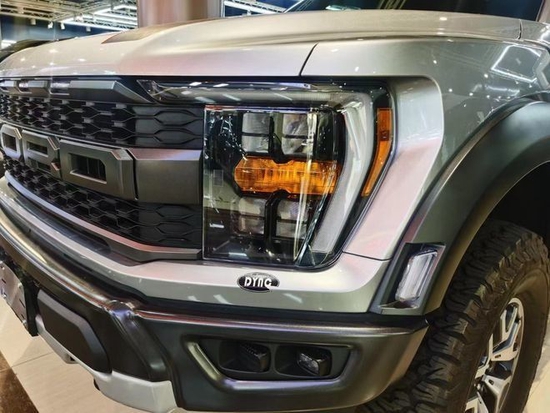 福特猛禽F150Raptor皮卡 原厂调校450匹马力及510磅扭水晶LED大灯,带黄色日间行车3原厂中网小黄灯(7个) 4。带雷达测距LED尾灯和反光镜共同作用(可起到并道辅助提示作用) 5。高强度LED安全接近灯(带盲点接近系统)