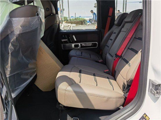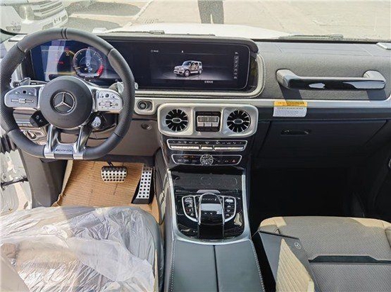 23款奔驰G63豪华精致的真皮包覆提供了足够的舒适性和支撑性,通风和加热功能让乘客免受高温和寒冷的煎熬。中控台多处均采用碳纤维材料覆盖,带彩色TFT显示屏的AMG仪表盘、AMG主菜单和单独的挡位显示器以及采用白色照明的AMG门槛。