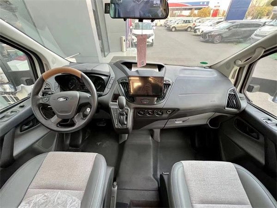 驾驶室基本保留福特原厂的设计,辅助驾驶系统标配倒车雷达、ESP、ABS等。正副驾驶座椅布艺包裹,驾驶区同后车之间设计有私密拉帘。方向盘包裹,让人驾驶时有较好的抓握感。