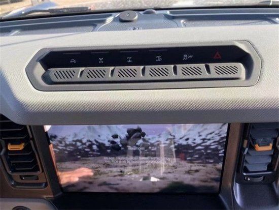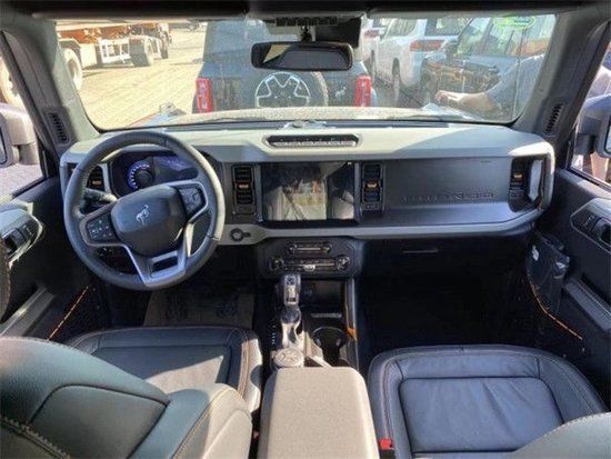 2023款福特烈马Bronco 车内采用硬朗的设计风格,中控台设计主次分明且有层次感,用料也厚实,多功能方向盘造型运动,中控屏幕采用内嵌式的设计增添了车内的时尚感,按键布局合理,档把设计精致,座椅宽大厚实,空间宽敞,实用性强。