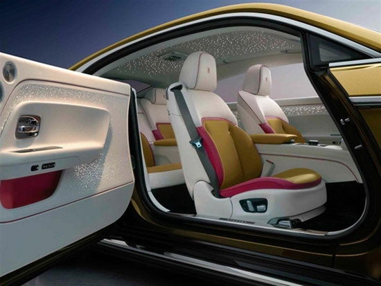 劳斯莱斯闪灵的内饰方面,同样彰显的是浓厚的奢华感,新车采用了品牌顶级的工艺和用料,大气的线条看起来十分奢华,新车还配备了全液晶仪表盘、中控大屏和副驾驶屏,副驾驶屏还有Spectre字标彰显其尊贵身份,5500颗璀璨“星星”更是让其豪华感暴露无遗。
